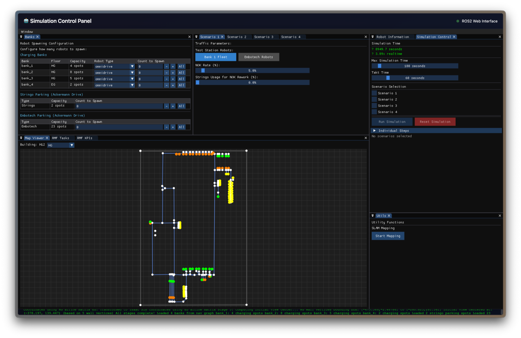 Next to Isaac Sim, we needed a central fleet manager to realistically control the robots. The scenarios also needed to be controlled and monitored.